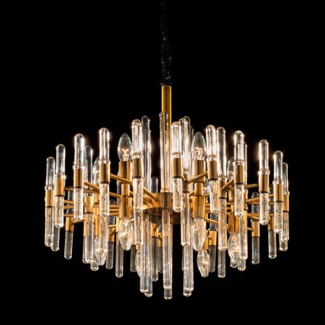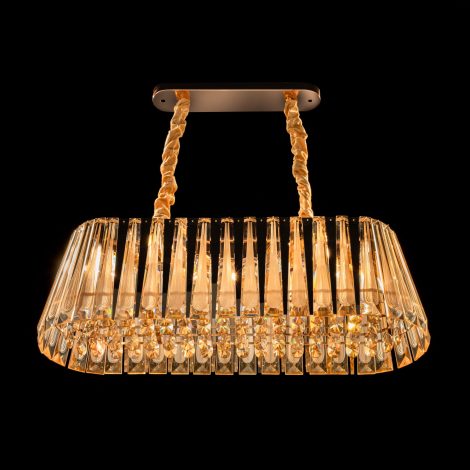 - لوستر مدرن کریستالی: این نوع لوستر ترکیبی از مدرنیته و شکوه کریستال است. با اینکه کریستال معمولاً با لوسترهای کلاسیک مرتبط است، اما در طراحیهای مدرن نیز به کار گرفته میشود تا جلوهای متفاوت و درخشان به فضا ببخشد. این نوع لوسترها اغلب در فضاهای لوکس و مجلل استفاده میشوند و جلوهای خیرهکننده به اتاق میدهند.
